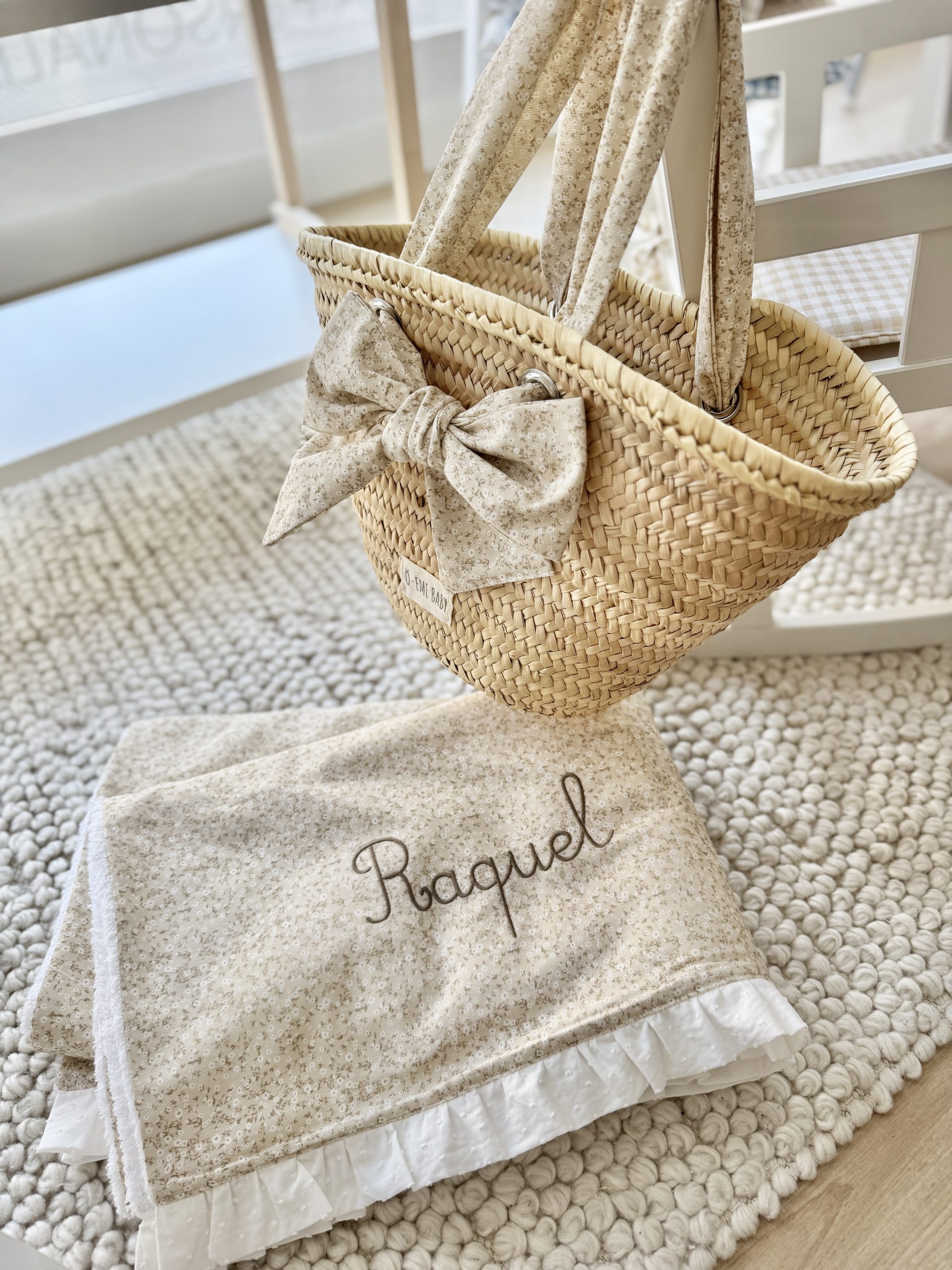 Pack perfecto para los días de verano… capazo con asas totalmente personalizadas (42x23x25cm) a juego de la toalla MUM XL de rizo (140x80cm)